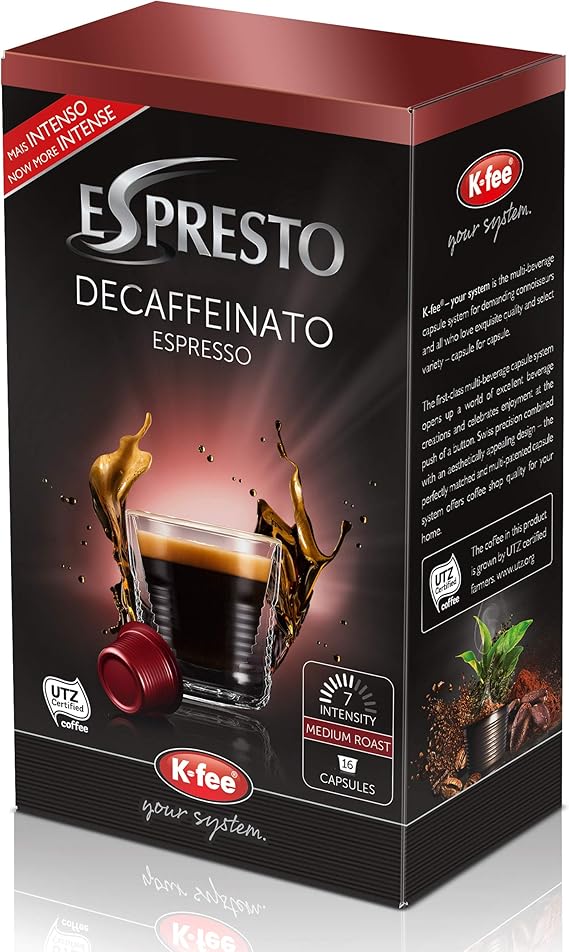 K Fee Espresto Espresso Decaffeinato Kaffee Koffeinfrei Arabica Intensitat 7 6er Pack 6x 16 Kapseln Amazon De Kuche Haushalt